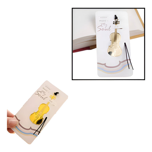 MARCA PÁGINAS VIOLIN REVISTA MÚSICA LIBRO AGENDA NOTAS PAPEL DORADO VIOLIN