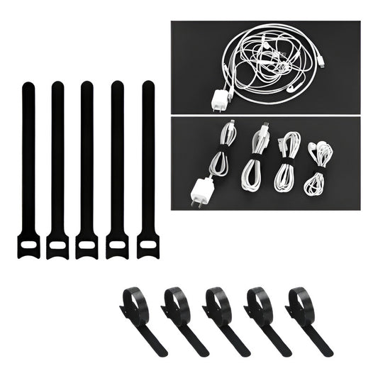 5X ORGANIZADOR CABLES ATACABLES VELCRO ORIFICIO FIJACIÓN NEGRO