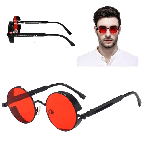 GAFAS SOL LENTE REDONDO ROJO UV400 STEAMPUNK