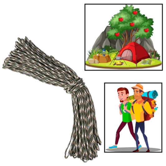 CUERDA PARACORD 7 NUCLEOS 50 PIES | 15 MTS VERDE MILITAR CAMUFLADO