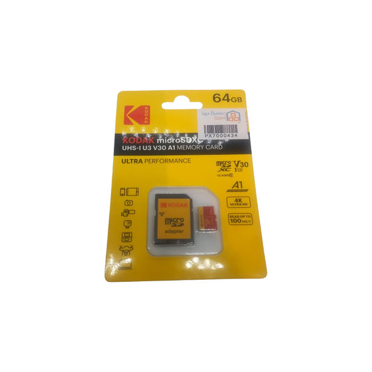 TARJETA MICRO SD 64GB KODAK A1 V30 XC C10 I3 4K ADAPTADOR SD