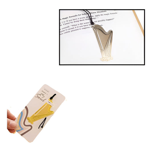 MARCA PÁGINAS ARPA LIBRO MÚSICA REVISTA NOTAS PAPEL AGENDA DORADO ARPA