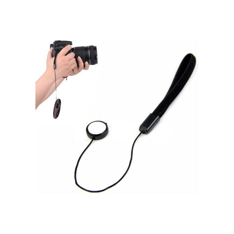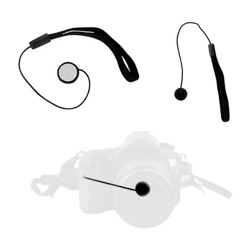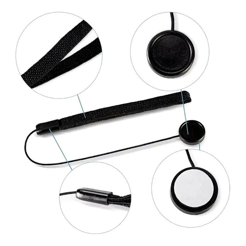 CORDON CUERDA TAPA LENTE ANTIPERDIDA ADHESIVA CANON NIKON NEGRO