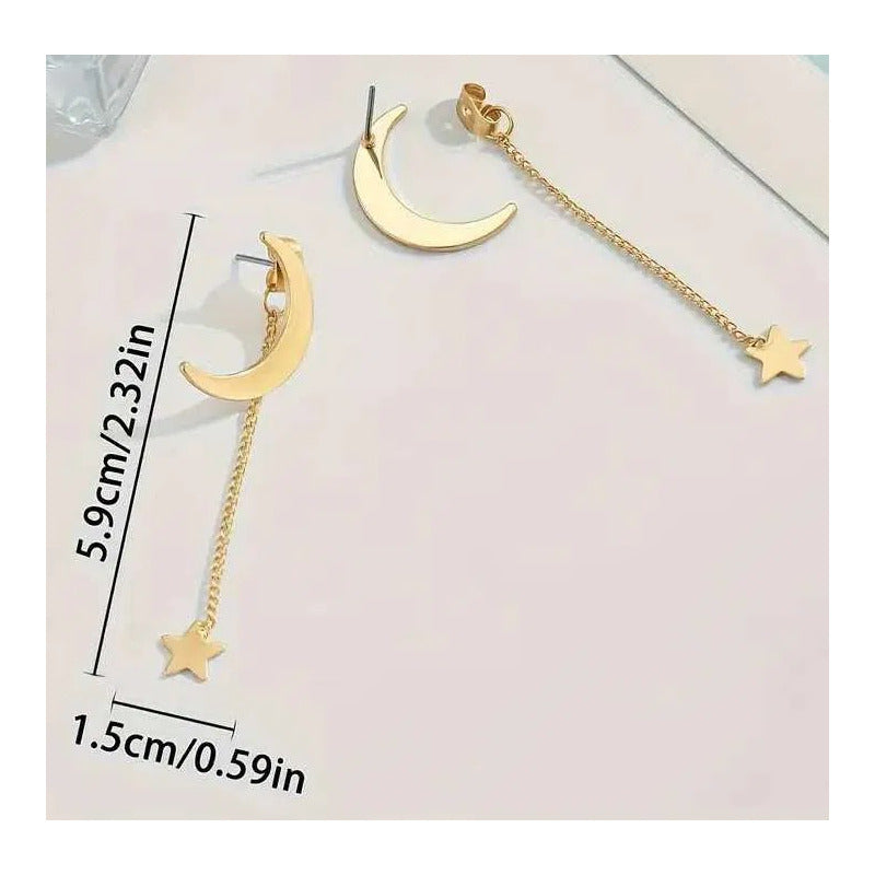 PENDIENTES ARETES STAR MOON CADENA LARGA DORADO OSCURO
