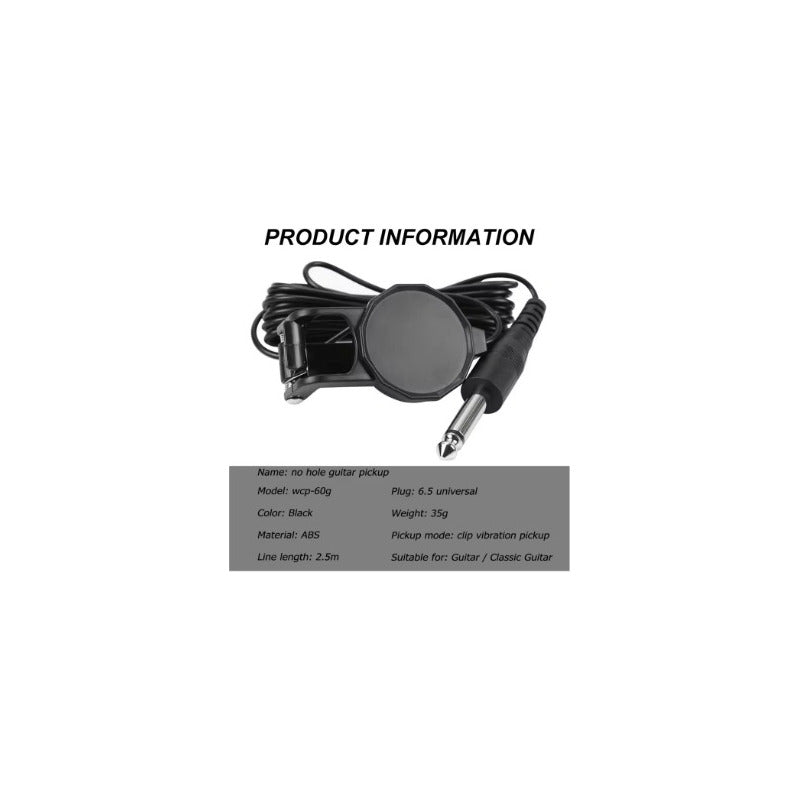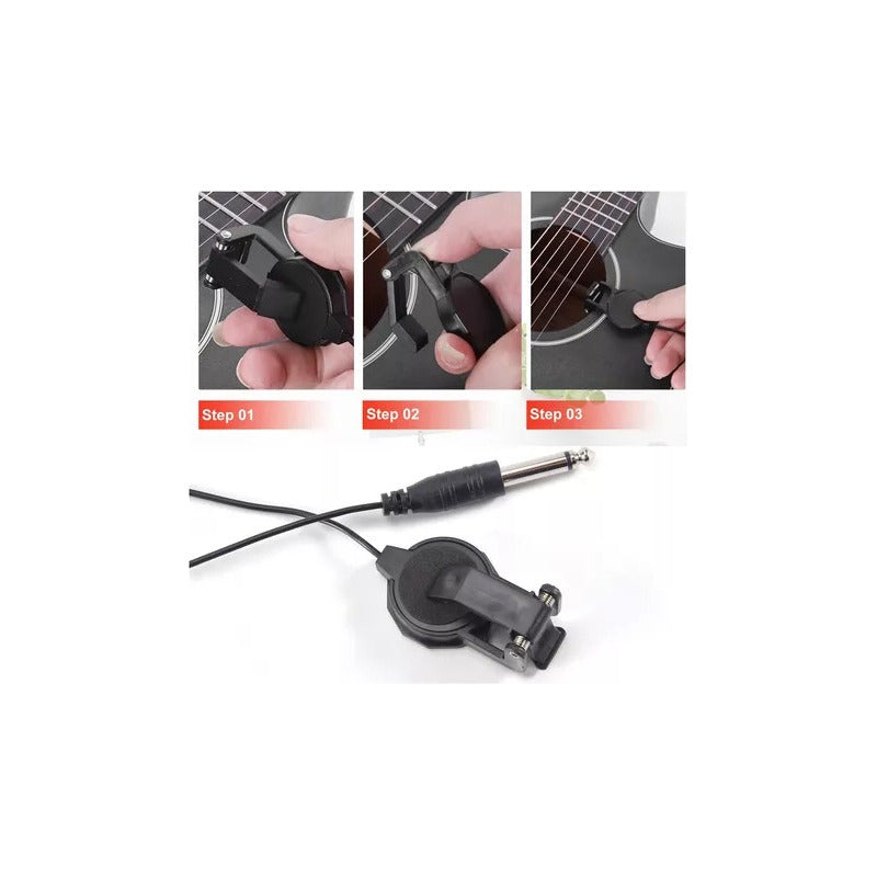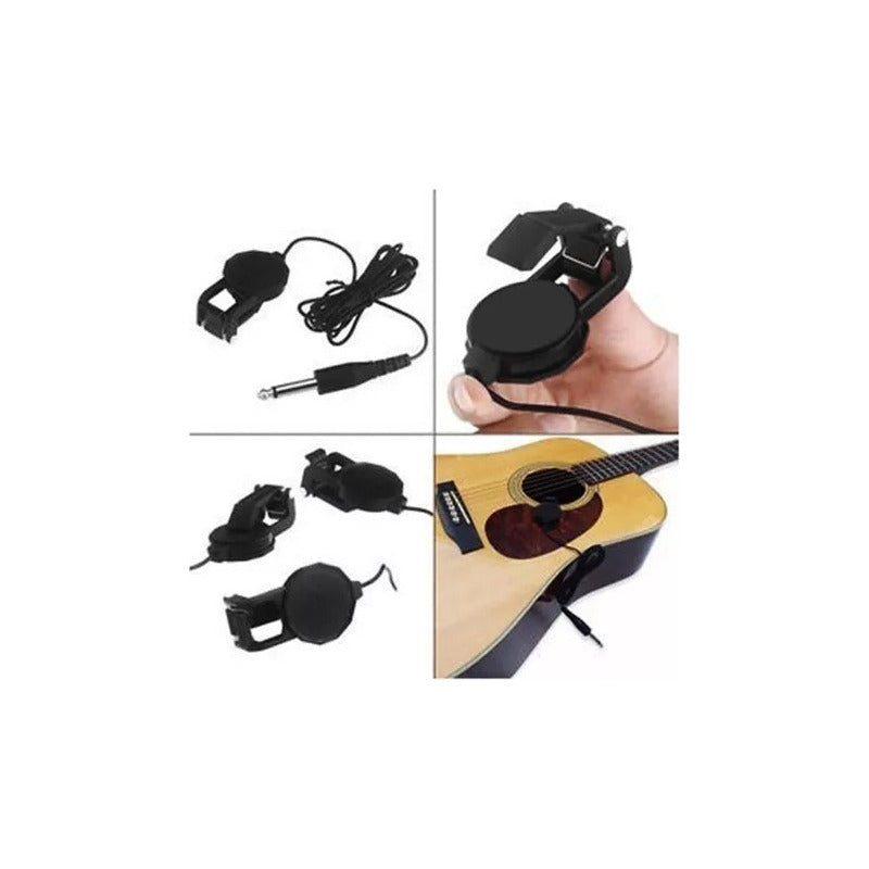 MICRÓFONO CONTACTO CLIP AUDIO GUITARRA ACÚSTICA JACK 1/4 NEGRO