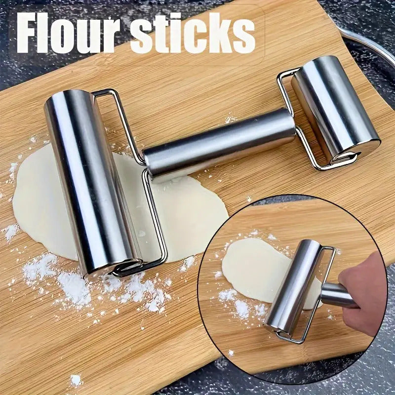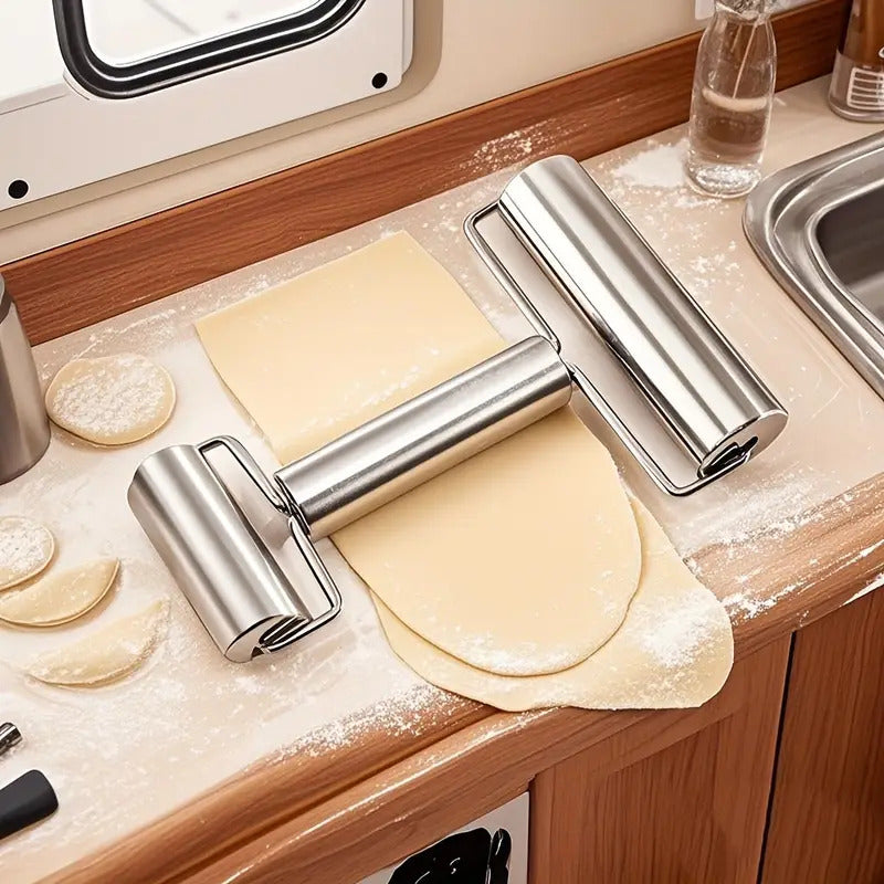 RODILLO DOBLE ACERO INOXIDABLE PASTELERÍA PANADERÍA COCINA PLATEADO