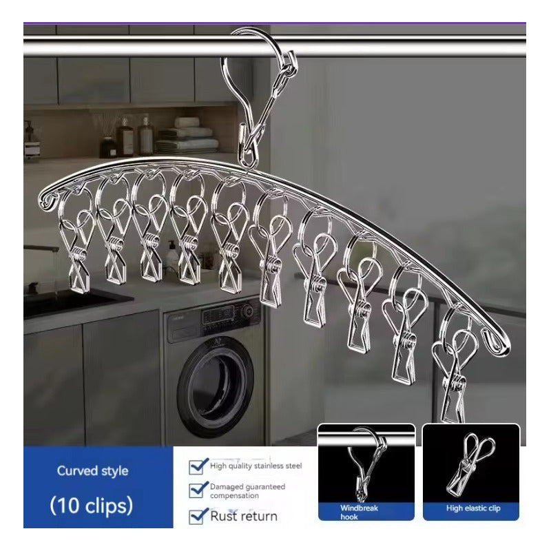 GANCHO ROPA INTERIOR MEDIAS METALICO ARCO 10 CLIPS DURABLE PLATEADO
