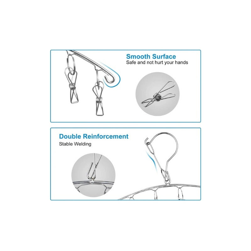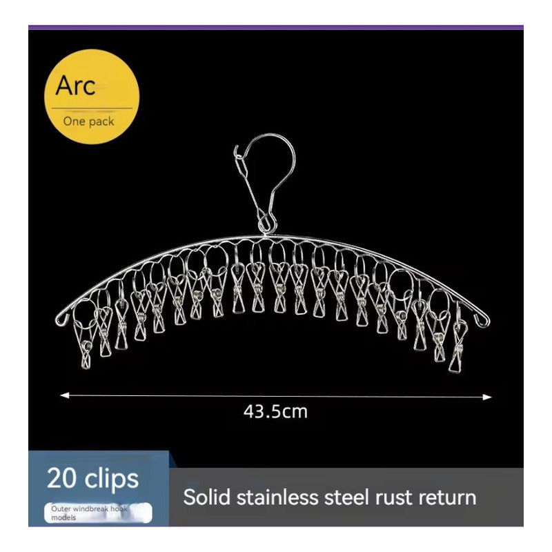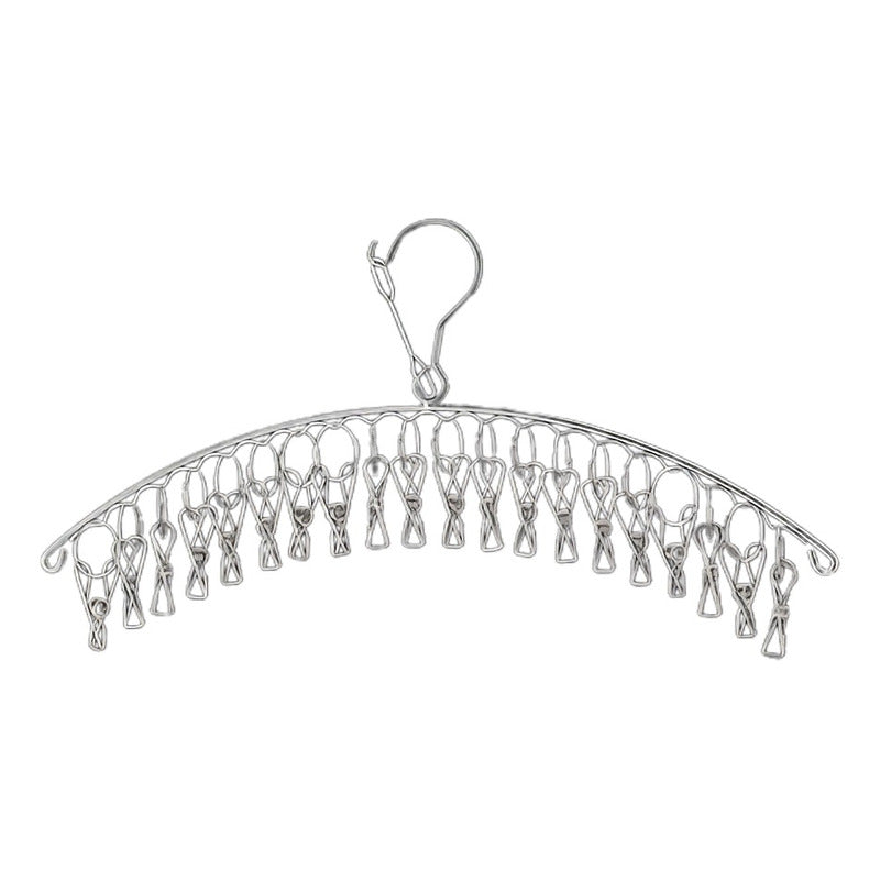 GANCHO ROPA INTERIOR MEDIAS METALICO ARCO 20 CLIPS DURABLE PLATEADO