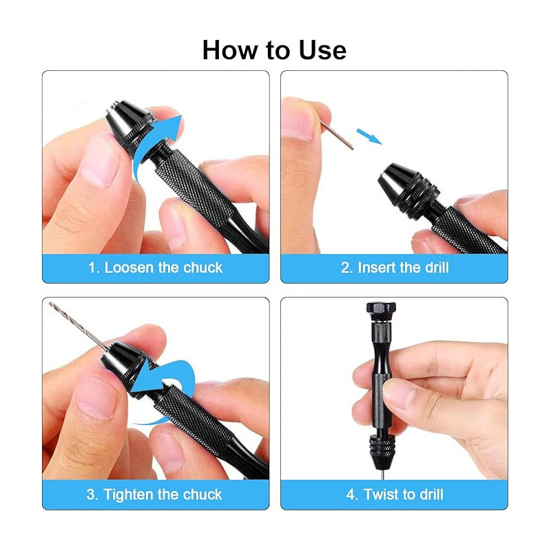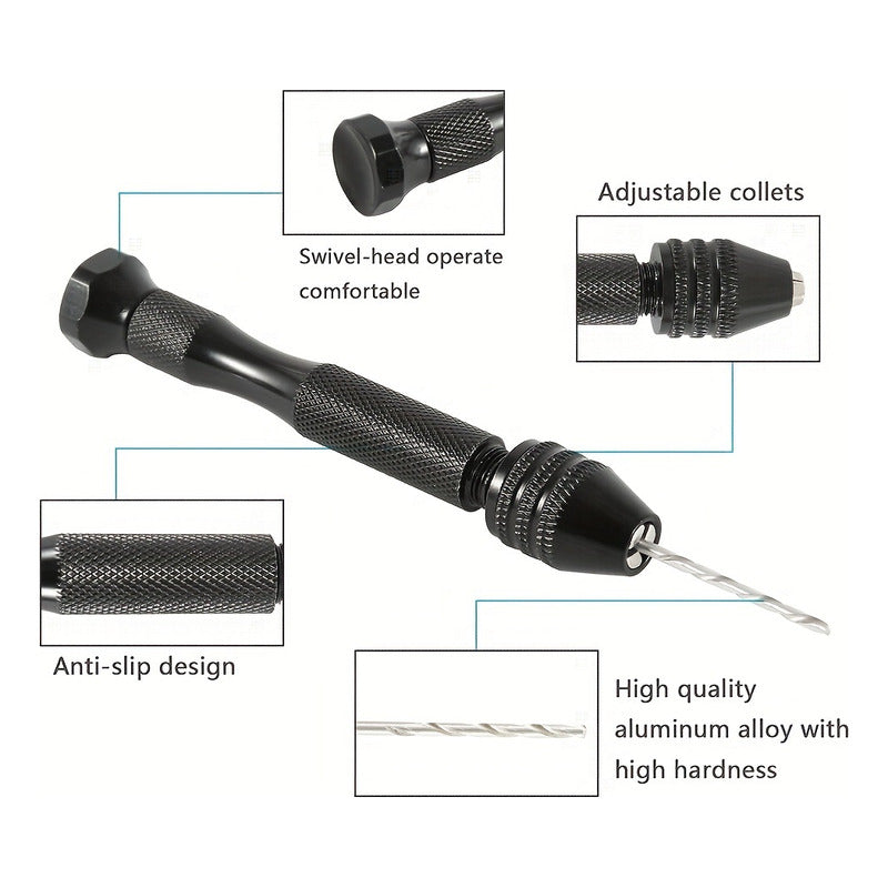 Somos GigaOutlet Co. Tenemos lo que Necesitas! (FIND THE DESCRIPTION OF THE PRODUCT IN ENGLISH AT THE BOTTOM!) PARA EXTRANJEROS / FOR OVERSEAS Puedes estar interesado en nuestros otros productos GUARDA este producto en tus FAVORITOS! Y Mantente al tanto de nuestros DESCUENTOS y OFERTAS de FIN DE SEMANA! TODAS LAS SEMANAS! Agrega varios artículos o cantidades y AHORRA en COSTOS DE ENVÍO! ******************************************************************* Mini Taladro Manual con 10 Brocas - Ideal para Madera, Bisutería y Joyería ¿Buscas precisión y versatilidad en tus proyectos de bricolaje o joyería? El Mini Taladro Manual con 10 Brocas es la herramienta perfecta para quienes trabajan con madera, marquetería, bisutería o joyería. Fabricado con una aleación de metal robusta y resistente, este taladro de mano garantiza durabilidad y un rendimiento eficiente en cada perforación. Con su diseño compacto y ligero, es fácil de manejar y perfecto para trabajos detallados. Características principales: Material premium: Cuerpo de aleación de aluminio para mayor durabilidad y ligereza. Color negro elegante y profesional. Peso: 32 gramos. Tamaño compacto: Con un largo de 9 cm y un diámetro de 1.4 cm, este mini taladro es ideal para espacios reducidos y trabajos de precisión. Juego de 10 brocas helicoidales: Incluye brocas de acero de alta velocidad en los siguientes tamaños: 2 de 1 mm, 2 de 1,5 mm, 2 de 2 mm, 2 de 2,5 mm y 2 de 3 mm. Estas brocas son ideales para trabajar en materiales suaves como madera, plástico, resina, ámbar, nogal y más. Precisión y control: El portabrocas manual tiene un rango de sujeción de 0,2 mm a 3,4 mm, permitiendo sujetar firmemente las brocas para garantizar perforaciones precisas y eficientes. Versatilidad: Adecuado para madera, plástico, caucho, modelismo, joyería, carpintería, ensamblaje electrónico y más. Este taladro manual se adapta a una gran variedad de proyectos creativos y de bricolaje. Especificaciones: Material del taladro: Aleación de aluminio Longitud del taladro: 9.5 cm (3,74 pulgadas) Color: Negro Rango de sujeción del mandril: 0,2-3,4 mm (1/64 - 9/64 pulgadas) Brocas helicoidales: Hechas de acero de alta velocidad, ideal para PCB, joyería y artesanías. Tamaños de las brocas: 1 mm, 1.5 mm, 2 mm, 2.5 mm y 3 mm (dos de cada tamaño). Incluye: 1 taladro manual 10 brocas helicoidales de varios tamaños Escenarios de uso: Este mini taladro manual es ideal para: Bricolaje en casa: Perforar pequeños agujeros en madera, resina, plásticos o bisutería. Joyería personalizada: Crear detalles precisos en cuentas, ámbar, nueces de oliva o cera de abeja. Artesanía y modelismo: Para aquellos que disfrutan construyendo modelos en madera o plástico, este taladro ofrece la precisión necesaria para proyectos detallados. Proyectos de marquetería y carpintería: Herramienta perfecta para trabajos en tilo, nogal y otros tipos de maderas blandas. Posibles problemas y soluciones: No apto para materiales duros: No se recomienda usar este taladro para perforar acero, hierro o piedra. Solución: Este producto está diseñado para trabajar con materiales blandos como madera, plástico y resina. Si necesitas perforar materiales más duros, se recomienda usar herramientas eléctricas especializadas. Control manual limitado: Al ser una herramienta manual, requiere fuerza y precisión por parte del usuario. Solución: Practica con materiales suaves primero y realiza perforaciones lentas para obtener resultados precisos. Incompatibilidad con algunas brocas más grandes: El rango del portabrocas es de 0,2 mm a 3,4 mm, lo que limita el uso de brocas más grandes. Solución: Este taladro está diseñado para trabajos de detalle y precisión, por lo que el tamaño limitado de las brocas asegura un mayor control en pequeños proyectos. Herramienta multiusos y portátil: Al ser tan ligero y compacto, puedes llevarlo fácilmente a cualquier parte. Ideal para aficionados al bricolaje que valoran la portabilidad. Precisión en cada proyecto: El diseño ergonómico y el rango de sujeción del mandril permiten perforaciones precisas, perfectas para trabajos detallados en joyería o marquetería. Diseño robusto y duradero: Fabricado en aleación de aluminio y acero de alta velocidad, este mini taladro está construido para durar y ofrecer un rendimiento confiable en cada uso. Palabras clave (SEO): Mini taladro manual, taladro para bisutería, taladro de mano para joyería, taladro para marquetería, brocas helicoidales para madera, herramientas para bricolaje, taladro preciso para manualidades, kit de perforación para joyería, taladro manual compacto, taladro para artesanías, herramienta portátil para perforación. Con este Mini Taladro Manual con 10 Brocas, tus proyectos de bricolaje, joyería y marquetería serán más fáciles y precisos que nunca. ¡No pierdas la oportunidad de llevar tu creatividad al siguiente nivel! ///////////////////////////////////////////////////////////////////////////// Mini Manual Drill with 10 Bits - Ideal for Wood, Beading, and Jewelry Are you looking for precision and versatility in your DIY or jewelry projects? The Mini Manual Drill with 10 Bits is the perfect tool for those working with wood, marquetry, beading, or jewelry. Made from a robust and durable metal alloy, this hand drill guarantees efficiency and long-lasting performance with every use. Its compact and lightweight design makes it easy to handle and ideal for detailed work. Key Features: Premium Material: Aluminum alloy body for enhanced durability and lightweight handling. Elegant and professional black color. Weight: 32 grams. Compact Size: With a length of 9 cm and a 1.4 cm diameter, this mini drill is ideal for small spaces and precision work. 10 Helical Drill Bits Set: Includes high-speed steel bits in the following sizes: 2 x 1mm, 2 x 1.5mm, 2 x 2mm, 2 x 2.5mm, and 2 x 3mm. These bits are perfect for soft materials like wood, plastic, resin, amber, w