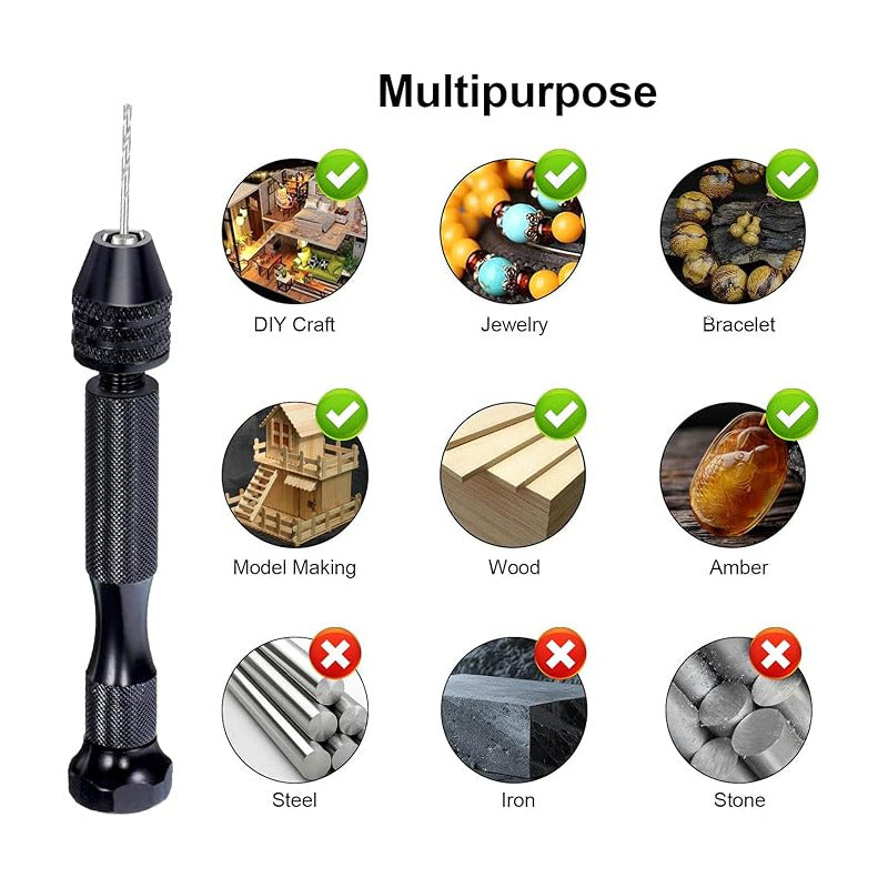 MINI TALADRO MANUAL 8 BROCAS MADERA MARQUETERÍA PLÁSTICO