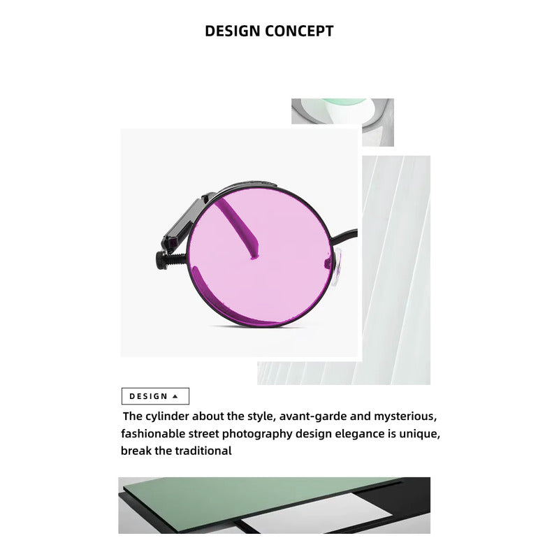GAFAS SOL POLICARBONATO UV REDONDAS ROSA STEAMPUNK FASHION REDONDO ROSA CLARO NEGRO NEGRO