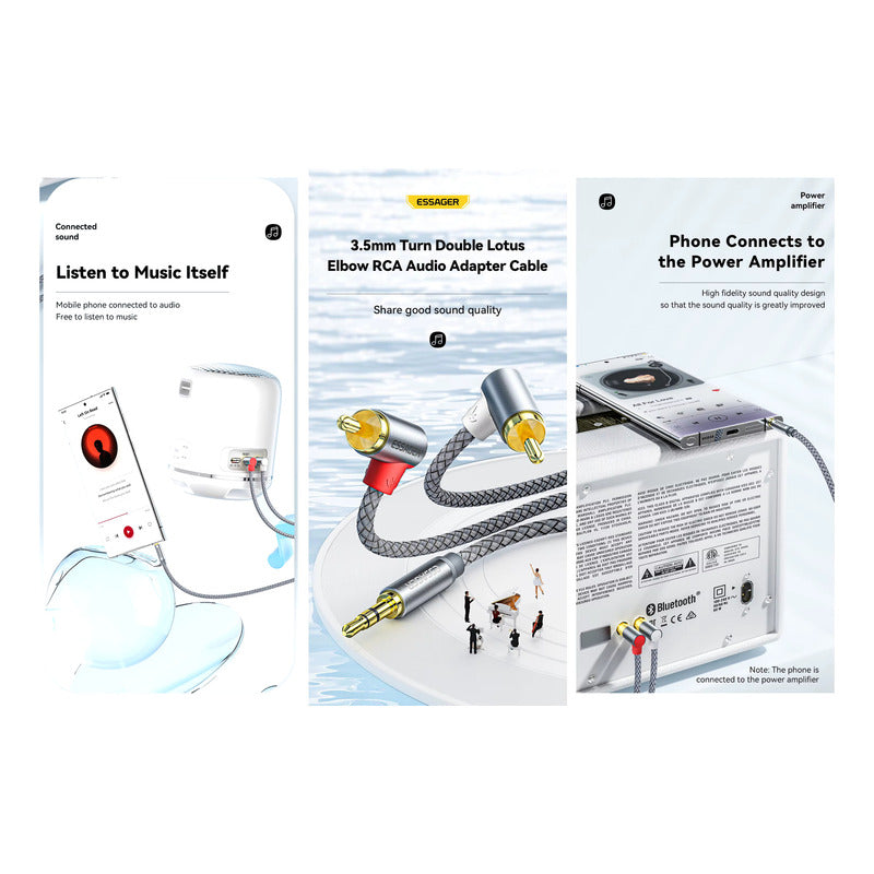 CABLE 2RCA 90° AUDIO JACK 3.5MM 3MTS ESSAGER FUNDA TRENZADA