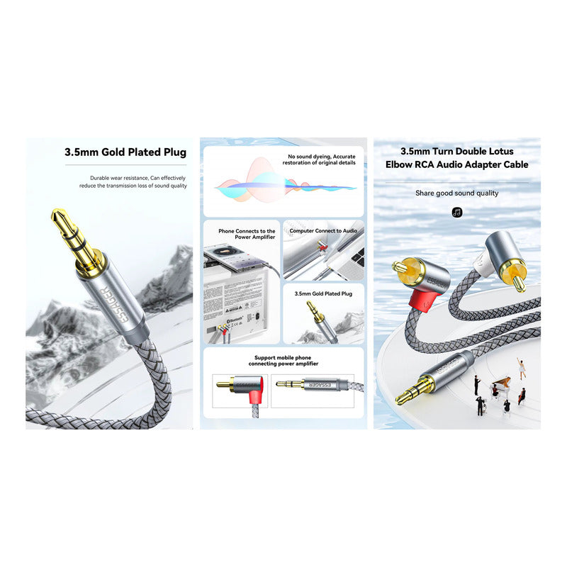 Somos GigaOutlet Co. Tenemos lo que Necesitas! (FIND THE DESCRIPTION OF THE PRODUCT IN ENGLISH AT THE BOTTOM!) PARA EXTRANJEROS / FOR OVERSEAS Puedes estar interesado en nuestros otros productos GUARDA este producto en tus FAVORITOS! Y Mantente al tanto de nuestros DESCUENTOS y OFERTAS de FIN DE SEMANA! TODAS LAS SEMANAS! Síguenos en Mercado Libre www.mercadolibre.com.co/pagina/gigaoutletco Suministros para Emprendedores Agrega varios artículos o cantidades y AHORRA en COSTOS DE ENVÍO! ******************************************************************* Cable 2RCA 90° Audio Jack 3.5mm 3m Essager Funda Trenzada, Color Gris, Conector Dorado Descubre el cable de audio Essager ES-YP14, diseñado para ofrecer una experiencia sonora de alta calidad y máxima durabilidad. Este cable combina estilo y funcionalidad con sus 3 metros de longitud, fundas trenzadas de material tipo cuerda para mayor resistencia, y conectores machos en ambas puntas con un diseño en ángulo de 90° ideal para conexiones en espacios reducidos. Características técnicas destacadas: Tipo de conector: 2RCA macho (rojo y blanco) en un extremo y Jack 3.5mm estéreo en el otro. Recubrimiento: Funda trenzada color gris, resistente al desgaste y a los enredos. Conectores dorados: Proveen una excelente calidad de señal, minimizando la pérdida de audio. Compatibilidad: Compatible con sistemas de audio, televisores, consolas de videojuegos, parlantes, amplificadores y dispositivos móviles con salida Jack 3.5mm. Diseño ergonómico: Ángulo de 90° que facilita la conexión en puertos difíciles de alcanzar o detrás de muebles. Longitud: 3 metros, ideal para conexiones de larga distancia sin comprometer la calidad del sonido. AWG: Calibre adecuado para garantizar una transmisión clara y libre de interferencias. Posibles problemas resueltos y ventajas: Problema: Enredos o rupturas en cables convencionales. Solución: Su funda trenzada otorga durabilidad superior y evita nudos, ideal para uso frecuente. Problema: Pérdida de calidad de sonido en cables económicos. Solución: Los conectores dorados reducen la oxidación y mantienen un audio nítido por más tiempo. Problema: Conexiones incómodas en espacios reducidos. Solución: El diseño en 90° permite conectar sin forzar el cable ni los dispositivos. Escenarios de uso: Conecta tu teléfono móvil o tablet a un sistema de audio estéreo para disfrutar de tus playlists favoritas. Mejora la calidad de sonido al conectar televisores o consolas a bocinas externas. Úsalo en estudios de grabación o presentaciones en vivo para una transmisión confiable de audio. Lleva tu experiencia de videojuegos al siguiente nivel con un audio más envolvente. Palabras clave para búsquedas (SEO): Cable RCA a Jack 3.5mm, cable audio trenzado, conector 90 grados, cable estéreo 2RCA, cable Essager gris, audio de alta calidad, RCA macho a Jack estéreo, cable duradero para audio, cable 3 metros audio. Eleva tu experiencia de sonido con el Cable Essager 2RCA 90° con Jack 3.5mm. Su diseño robusto, conexión impecable y estilo moderno lo convierten en una elección ideal para cualquier amante de la música o profesional del audio. ¡No te quedes sin el tuyo y transforma cómo escuchas cada nota! ///////////////////////////////////////////////////////////////////////////// 2RCA 90° Audio Cable 3.5mm Jack 3m Essager Braided Sleeve, Gray Color, Gold-Plated Connectors Discover the Essager ES-YP14 audio cable, designed to deliver high-quality sound and maximum durability. This cable combines style and functionality with its 3-meter length, braided rope-like material for enhanced resistance, and male connectors on both ends with a 90° angle design perfect for tight spaces. Key Technical Features: Connector Type: 2RCA male (red and white) on one end and 3.5mm stereo jack on the other. Coating: Braided sleeve in gray color, wear-resistant and tangle-free. Gold-Plated Connectors: Provide excellent signal quality, minimizing audio loss. Compatibility: Works with audio systems, TVs, gaming consoles, speakers, amplifiers, and mobile devices with a 3.5mm jack output. Ergonomic Design: 90° angle makes it easy to connect in hard-to-reach ports or behind furniture. Length: 3 meters, perfect for long-distance connections without compromising sound quality. AWG: Proper gauge ensures clear transmission and interference-free audio. Problems Solved and Advantages: Problem: Tangles or breaks in regular cables. Solution: The braided sleeve offers superior durability and prevents knots, ideal for frequent use. Problem: Loss of sound quality in budget cables. Solution: Gold-plated connectors reduce oxidation and maintain crisp audio for longer. Problem: Uncomfortable connections in tight spaces. Solution: The 90° design allows for easy connection without straining the cable or devices. Use Scenarios: Connect your smartphone or tablet to a stereo system to enjoy your favorite playlists. Improve sound quality by connecting TVs or consoles to external speakers. Use it in recording studios or live performances for reliable audio transmission. Enhance your gaming experience with more immersive sound. SEO Keywords: 2RCA to 3.5mm Jack cable, braided audio cable, 90-degree connector, stereo cable 2RCA, gray Essager cable, high-quality audio cable, RCA male to stereo jack, durable audio cable, 3-meter audio cable. Elevate your sound experience with the Essager 2RCA 90° to 3.5mm Jack Cable. Its robust design, impeccable connection, and modern style make it the perfect choice for music lovers and audio professionals alike. Don’t miss out—get yours today and transform how you hear every note! ******************************************************************* Nosotros 1. Envíos rápidos y seguros: Todos nuestros productos son enviados a través de Mercado Envíos, garantizando una entrega rápida y segura a cualquier parte de Colombia. 2. Compra protegida: Todas las transacciones realizadas a través de Mercado Libre 