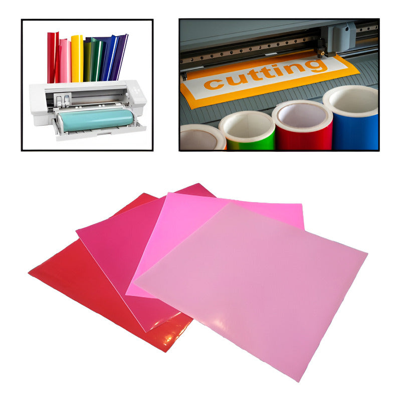 4X VINILO 12 X 12 GAMA PASIÓN ROJOS ROSADOS BRILLANTE CAMEO MULTICOLOR