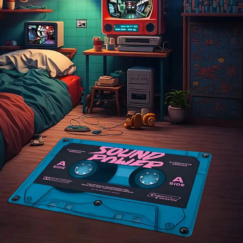 TAPETE HOGAR COCINA ENTRADA CASA CASSETTE SOUND POWER 40X60 60 CM 40 CM CASSETTE AZUL ACERO