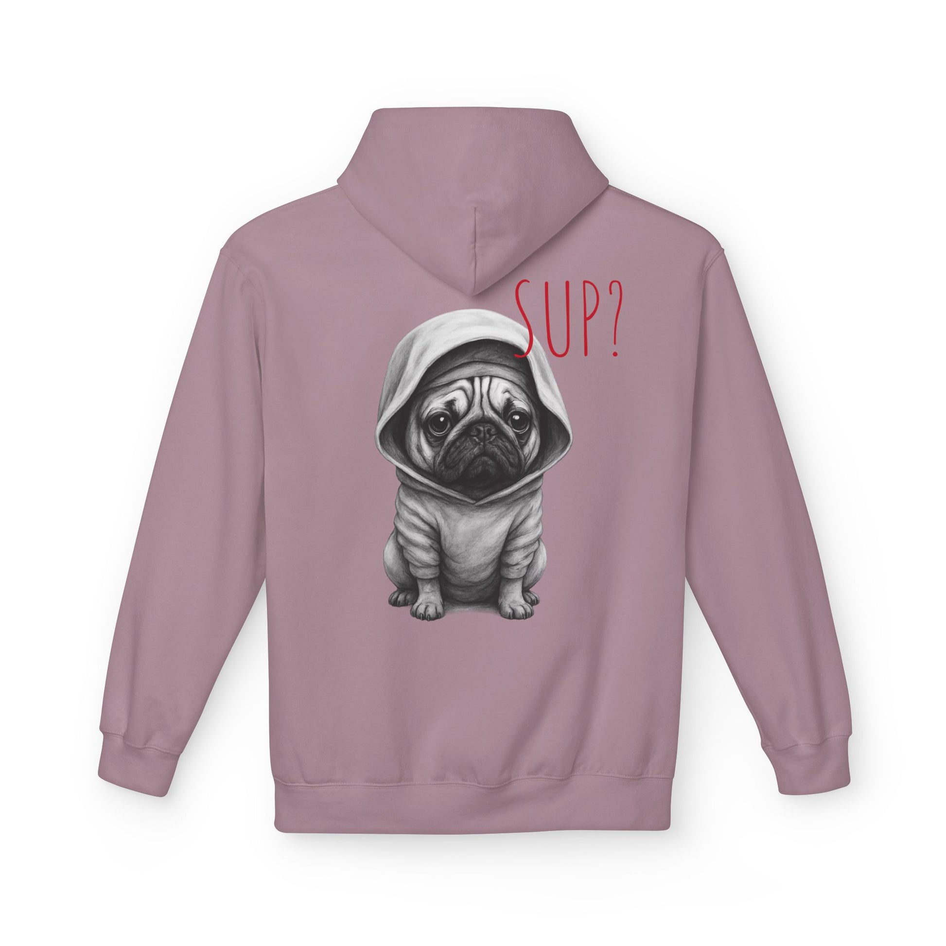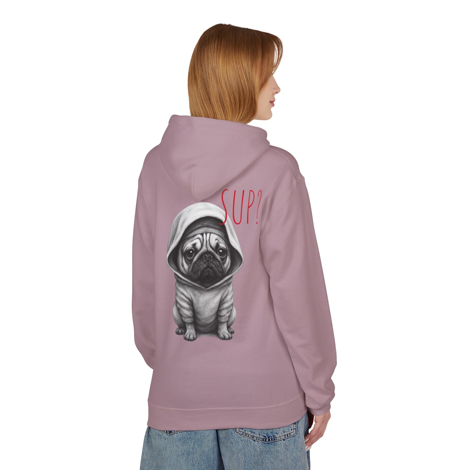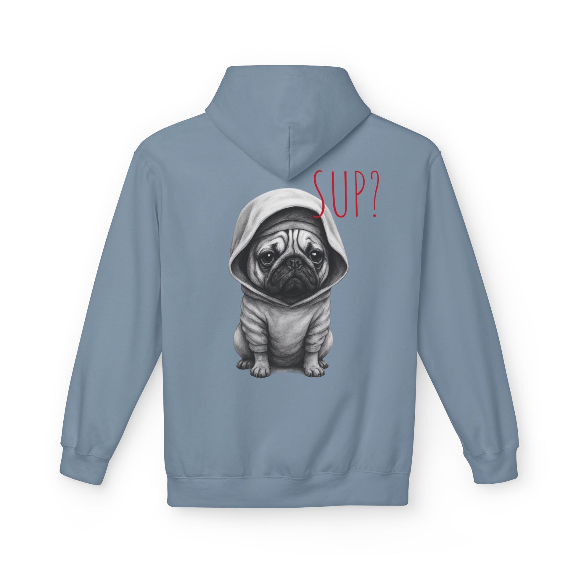 PUG HOODIE – 'SUP?' CUTE PUG IN HOODIE GRAPHIC PULLOVER