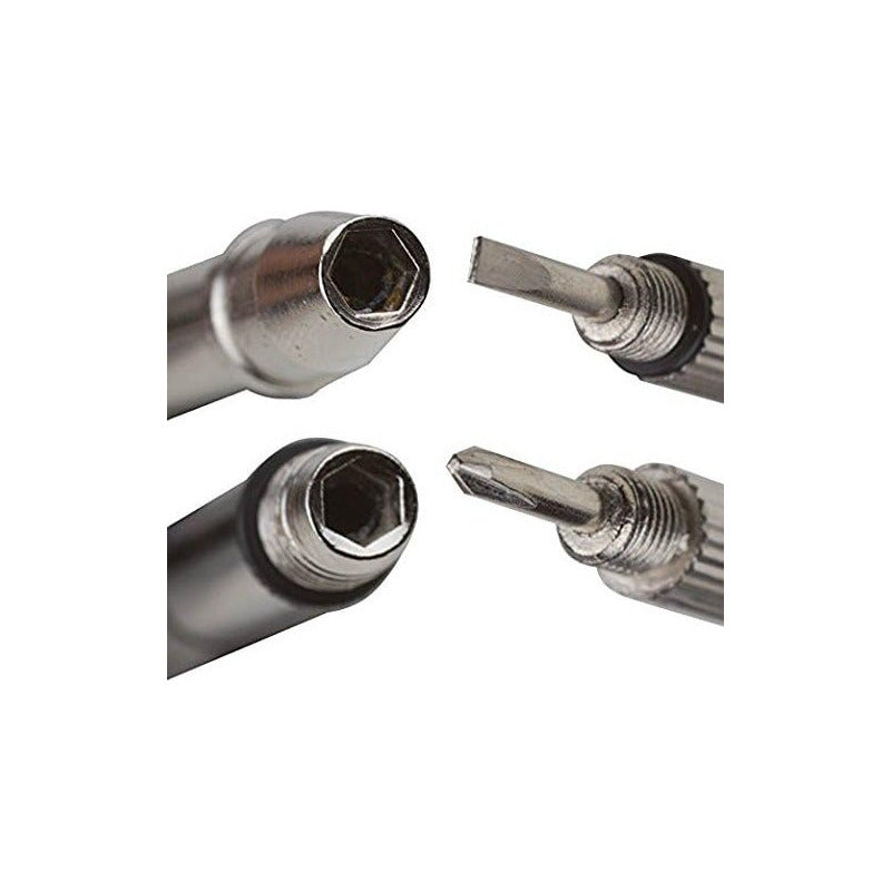 Somos GigaOutlet Co. Tenemos lo que Necesitas! Puedes estar interesado en nuestros otros productos ******************************************************************* Kit Destornillador 3 Puntas Intercambiables - Metálico (6 cm x 5 mm) ¡Haz frente a cualquier tarea de reparación con nuestro Kit Destornillador 3 Puntas Intercambiables! Diseñado para ser tu compañero confiable en la reparación de gafas, relojes, celulares, dispositivos electrónicos y más, este pequeño pero poderoso destornillador te brinda la versatilidad y precisión que necesitas para realizar reparaciones con facilidad y eficacia. Características: Tres Puntas Intercambiables: Equipado con tres puntas intercambiables: plana (pala), estrella (cruz) y hexagonal, nuestro kit te proporciona las herramientas adecuadas para enfrentar una variedad de tornillos comunes en dispositivos electrónicos y mecánicos. Construcción Metálica Duradera: Fabricado con materiales metálicos de alta calidad, nuestro destornillador garantiza resistencia y durabilidad para soportar el uso frecuente y mantener su rendimiento óptimo a lo largo del tiempo. Tamaño Compacto: Con unas dimensiones de 6 cm de largo por 5 mm de ancho, este destornillador es lo suficientemente compacto como para caber en tu bolsillo o estuche de herramientas, asegurando que siempre esté al alcance cuando lo necesites. Problemas y Soluciones: Tornillos Inaccesibles o Apretados: Los tornillos pequeños y difíciles de alcanzar pueden presentar un desafío durante las reparaciones. Nuestro kit ofrece soluciones con puntas intercambiables que se adaptan a diferentes tipos de tornillos, facilitando el acceso y el apriete de los mismos. Herramientas Inadecuadas para el Trabajo: Utilizar herramientas inadecuadas puede resultar en daños en los dispositivos o en tornillos mal ajustados. Con nuestro kit, tendrás las herramientas precisas necesarias para realizar reparaciones precisas y seguras en una variedad de dispositivos. Escenarios de Uso: Reparación de Dispositivos Electrónicos: Utiliza nuestro destornillador para reparar teléfonos móviles, tabletas, laptops y otros dispositivos electrónicos, asegurando que los tornillos estén apretados de manera segura y los componentes se mantengan en su lugar. Mantenimiento de Gafas y Relojes: Realiza ajustes y reparaciones en tus gafas o relojes favoritos con precisión y facilidad, prolongando su vida útil y manteniéndolos en óptimas condiciones. Proyectos de Bricolaje: Ya sea que estés montando muebles, armando juguetes o realizando proyectos de bricolaje en casa, nuestro kit destornillador te será útil para completar cualquier tarea que requiera el uso de tornillos. ¡Conviértete en un Experto en Reparaciones con Nuestro Kit Destornillador 3 Puntas Intercambiables! Adquiere ahora nuestro kit y descubre cómo puede facilitar tus tareas de reparación y mantenimiento diarias, ¡sin importar el tamaño del proyecto! ******************************************************************* Nosotros 1. Envíos rápidos y seguros: Todos nuestros productos son enviados a través de Mercado Envíos, garantizando una entrega rápida y segura a cualquier parte de Colombia. 2. Compra protegida: Todas las transacciones realizadas a través de Mercado Libre están protegidas por su programa de Protección al Comprador, asegurando una compra segura y sin riesgos. 3. Atención al cliente personalizada: Contamos con un equipo de atención al cliente disponible para resolver cualquier duda o inconveniente que puedas tener con tu compra. ¡Tu satisfacción es nuestra prioridad! Bienvenidos, Giga Outlet Co.