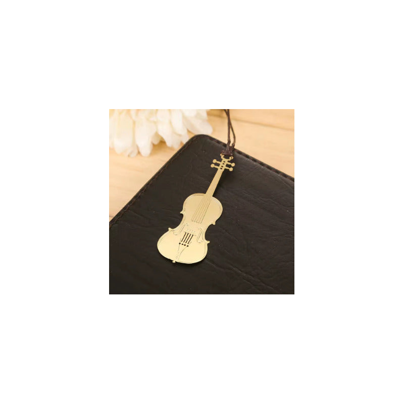 MARCA PÁGINAS VIOLIN REVISTA MÚSICA LIBRO AGENDA NOTAS PAPEL DORADO VIOLIN