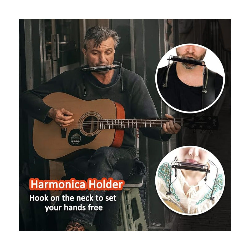 SOPORTE CUELLO ARMÓNICA DIATÓNICA 10CMS | 4 PULGADAS SOPORTE CUELLO NEGRO