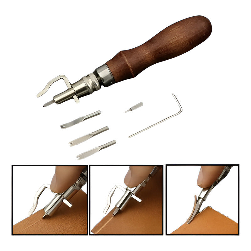 KIT HERRAMIENTAS CUERO MARROQUINERÍA 7 EN 1 ARTESANÍAS BORDÓ