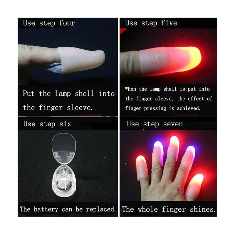 2X DEDOS LUZ LED MULTICOLOR MAGIA ILUSIONISMO DISFRAZ FIESTA