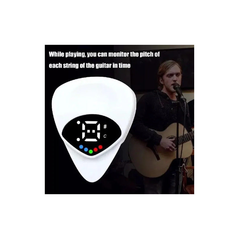 2 EN 1 PICK PÚA AFINADOR ELECTRÓNICO GUITARRA BAJO UKELELE BLANCO MEDIANO
