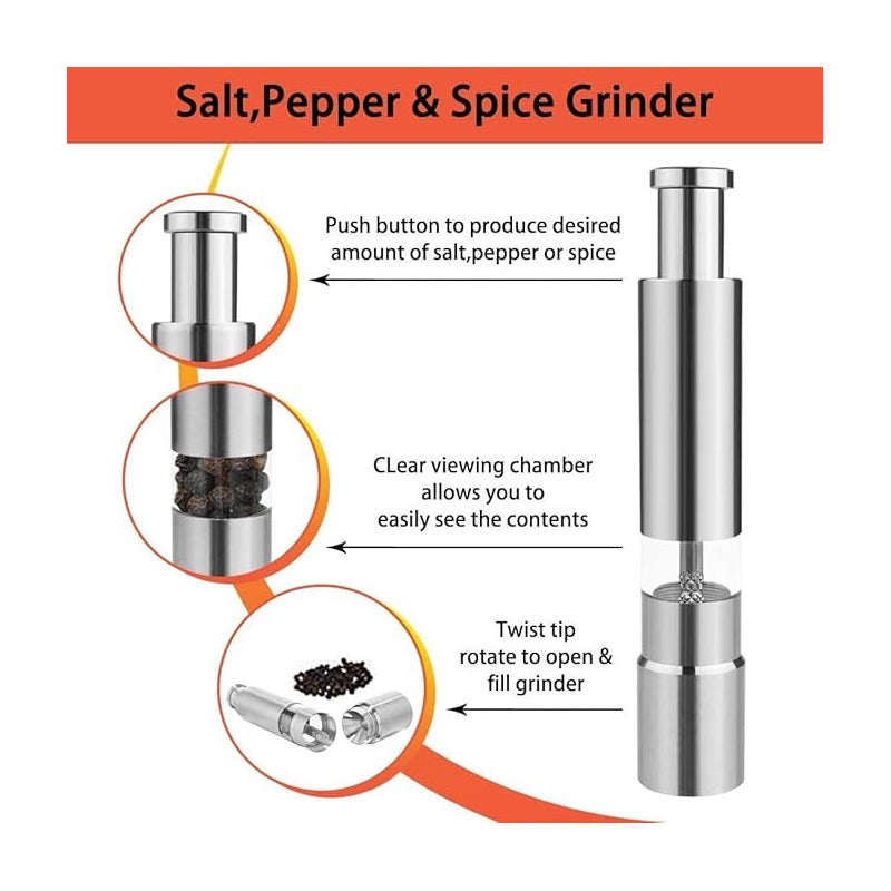 MOLEDOR TRITURADOR DISPENSADOR PIMIENTA ACERO INOXIDABLE PLATEADO
