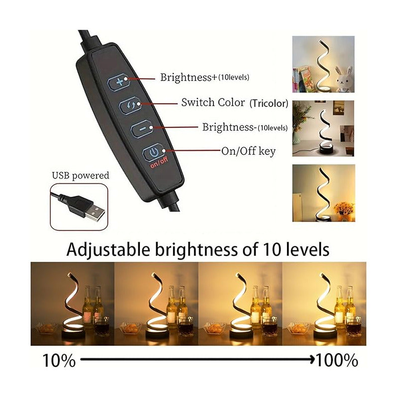 LAMPARA USB ESPIRAL ESCRITORIO MESA NOCHE ESTUDIO MODERNA NEGRO BLANCO 5V