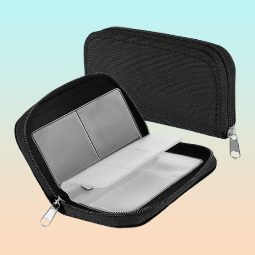 ESTUCHE TARJETAS MEMORIA SD FLASH 22 ESPACIOS BOLSILLOS NEGRO