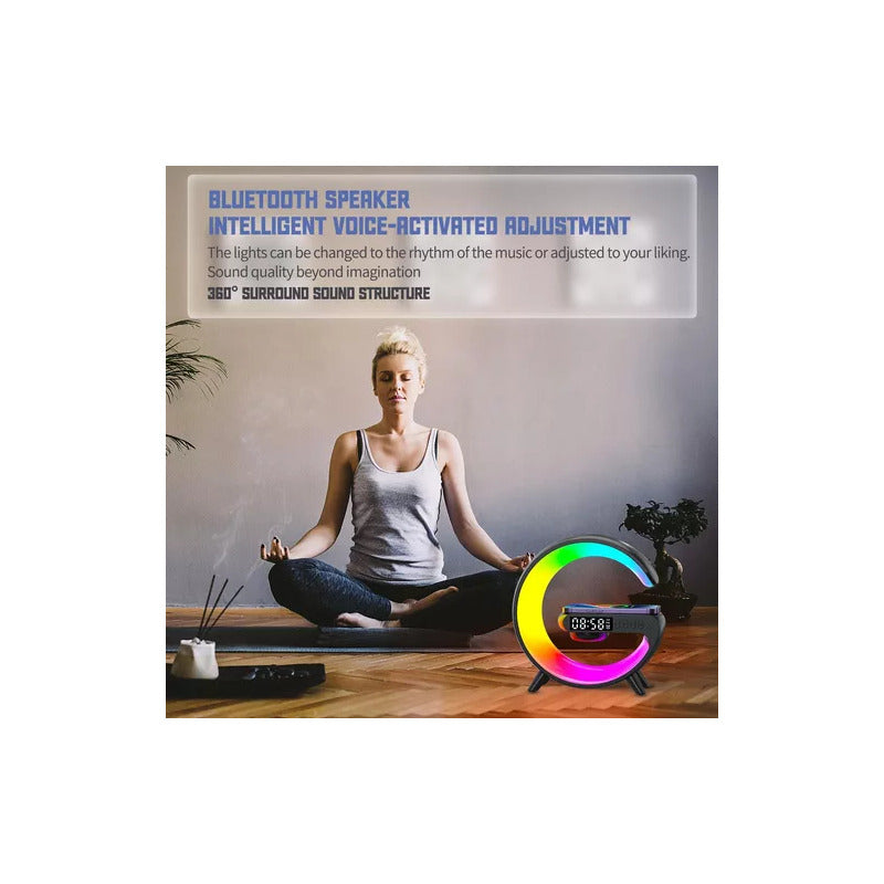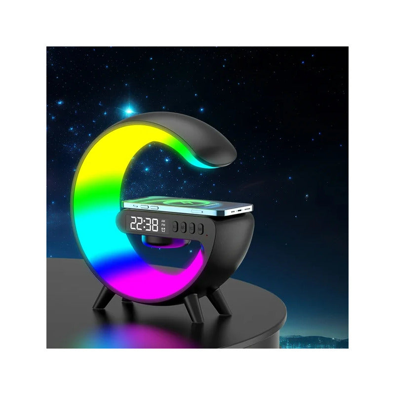 CARGADOR CELULAR INALAMBRICO RGB RELOJ SPEAKER BLUETOOH NEGRO