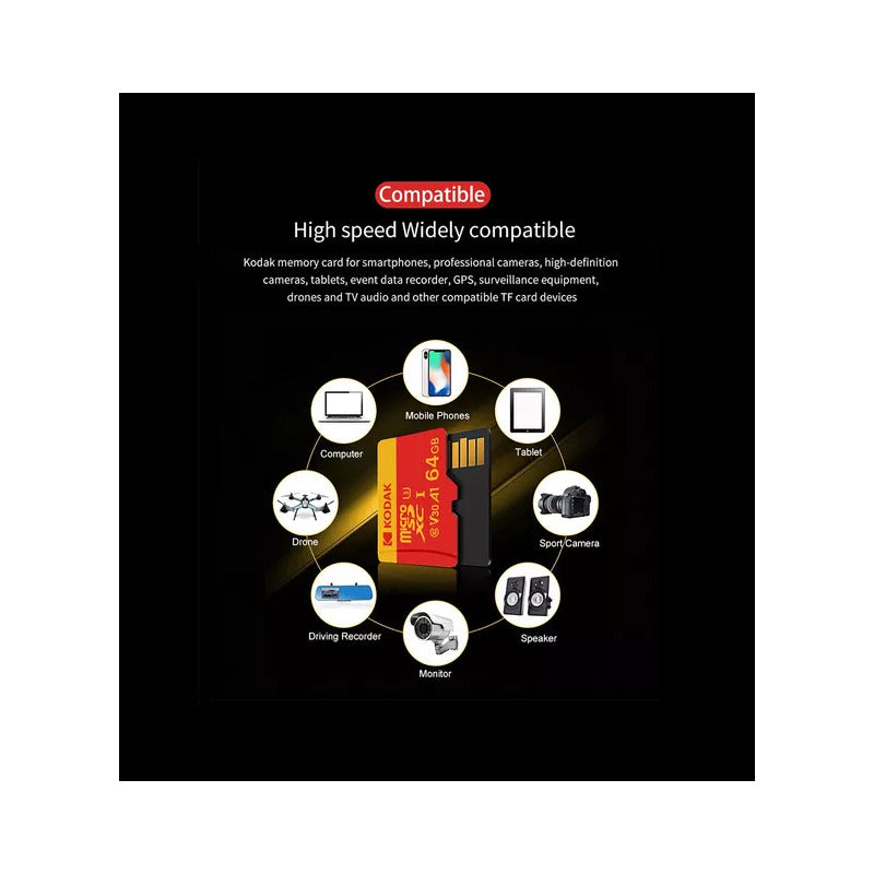 TARJETA MICRO SD 64GB KODAK A1 V30 XC C10 I3 4K ADAPTADOR SD
