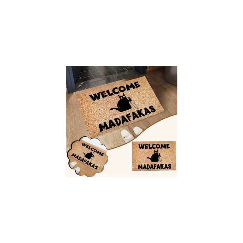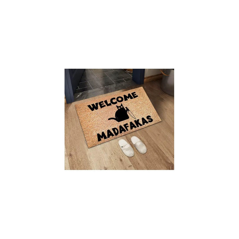 TAPETE HOGAR COCINA ENTRADA CASA GATO WELCOME 40X60 60 CM 40 CM GATO WELCOME MADAFAKAS MARRÓN CLARO