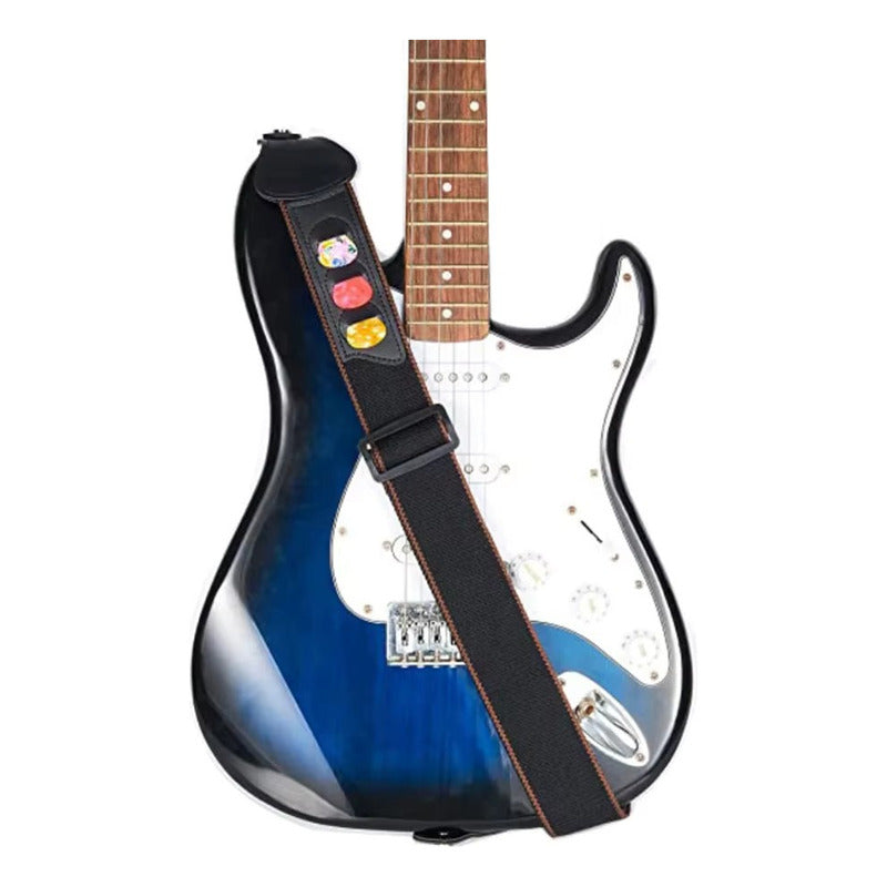 KIT SET CORREA GUITARRA 4 PUAS PICKS NEGRO NEGRO KIT 7 UNIDADES