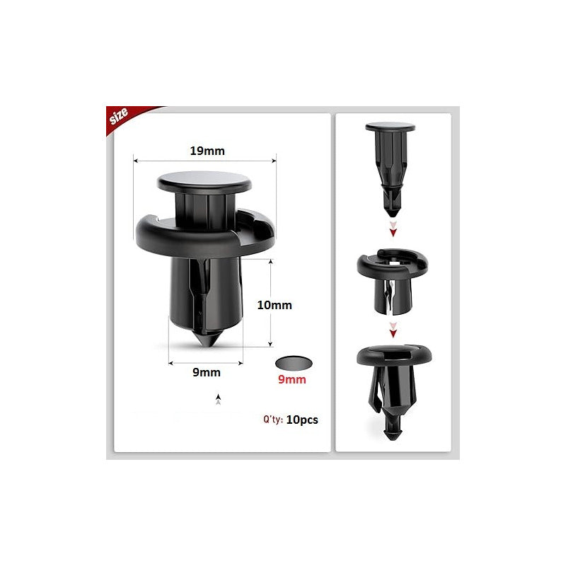 10X PIN PLÁSTICO CLIP AJUSTE CARRO MOTOR RETENEDOR REMACHE NEGRO