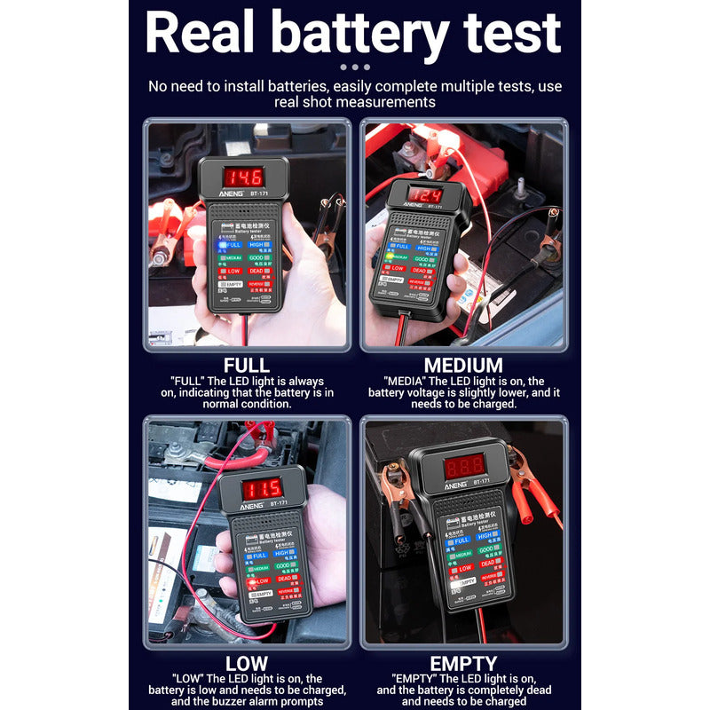 PROBADOR BATERIA MULTIFUNCIONAL ANENG BT-171 PANTALLA LED 12V