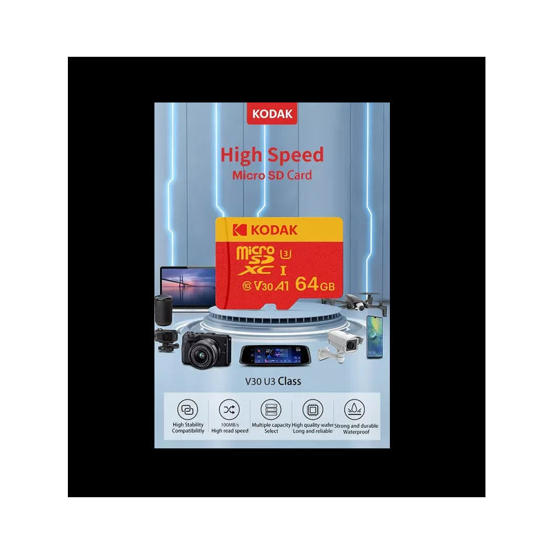 TARJETA MICRO SD 64GB KODAK A1 V30 XC C10 I3 4K ADAPTADOR SD